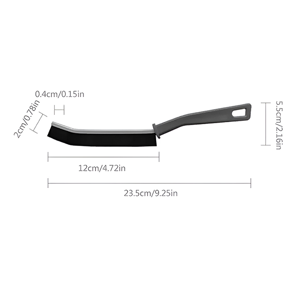 Selle tööriista kogupikkus on 9,3 tolli ja 4,7-tollise harjapeaga harjapea, mistõttu on seda tööriista lihtne hoiustada. Riputage see üles või peitke see sahtlisse – see on alati valmis järgmiseks puhastustööks.