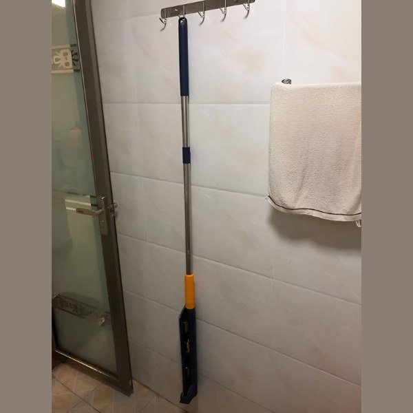 Mopi kompaktne disain võimaldab kasutamata jätmise korral vertikaalselt üles riputada, säästes väärtuslikku hoiuruumi. Riputage see oma vannitoa või pesuruumi seinale, et hoida seda eemal, kuid alati kasutusvalmis.