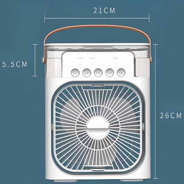 600 ml veepaagiga kaasaskantav kliimaseade tagab pikaajalise jahutamise ja niisutamise, mis sobib ideaalselt tundide kaupa kasutamiseks ilma sagedaste täitmisteta.
