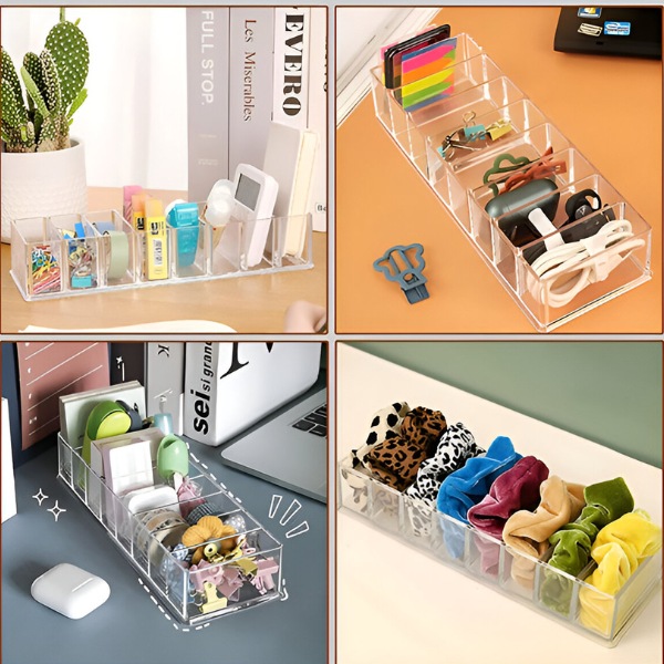 ORGABINi eemaldatavad vaheseinad vÔimaldavad teil luua suuremaid vÔi vÀiksemaid lahtreid, sÔltuvalt teie vajadustest. Olgu tegemist mahukate tarvikute vÔi pisikeste kaablitega, lÀbipaistev ja vastupidav PET-materjal tagab, et teie esemed on korralikult hoiustatud ja jÀÀvad alati nÀhtavaks.