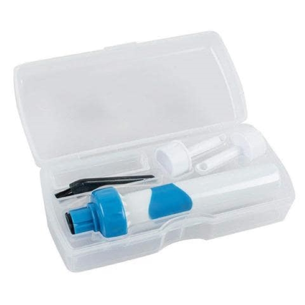 EARSIO eemaldab kangekaelse kõrvavaigu võimsa imemisega, kogudes mustuse hügieenilisse anumasse.