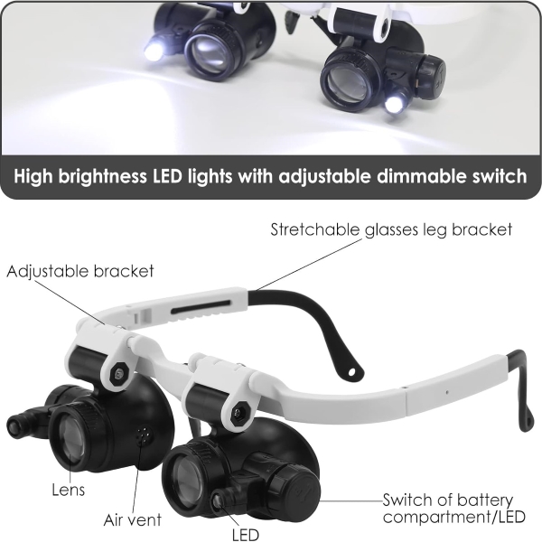 Kahe reguleeritava LED-tulega varustatud suurendusklaas tagab optimaalse valgustuse hÀmarates keskkondades selgema vaate.