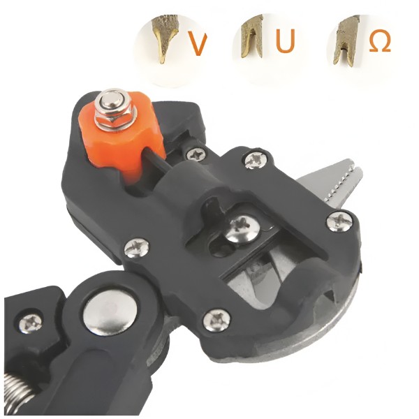 See tööriist sisaldab 3 vahetatavat tera (V, U, Ω), mis võimaldavad teostada erinevat tüüpi lõikeid, muutes selle ideaalseks erinevate pügamis- ja pookimistööde jaoks.