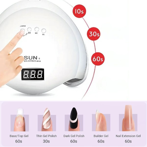 3 taimeri seadistusega (10s, 30s, 60s) saate kohandada kuivatamisprotsessi vastavalt oma geeli tüübile ja isiklikele vajadustele. Nutikas andur lülitub automaatselt sisse, kui teie käed või jalad asetatakse lambi alla, tagades iga kord muretu kogemuse.