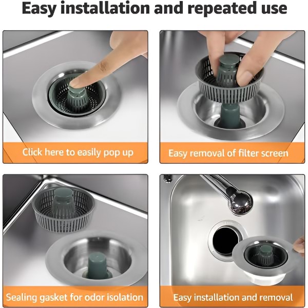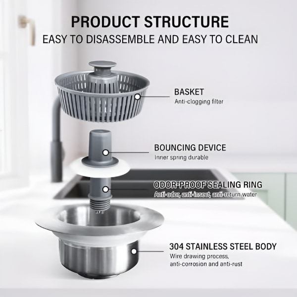 See kõik-ühes-lahendus toimib nii sõelana, stopperina kui ka lõhnafiltrina – hoides teie valamu puhta, kuiva ja lõhnavaba.