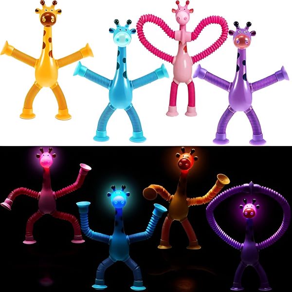 Väljatõmmatav kaelkirjak mänguasi koos tuledega (4 tk) | TOZARI