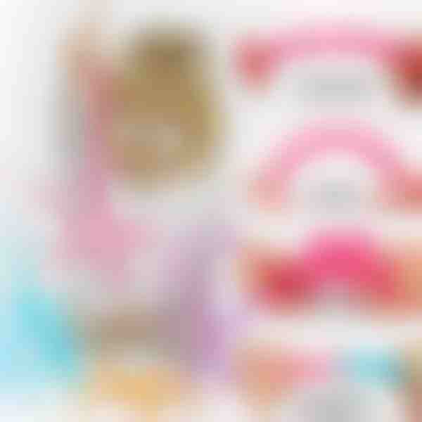 4 × lõbusad kaelkirjakud (lilla, roosa, sinine ja kollane).